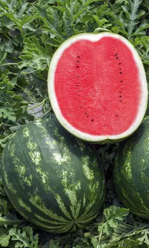 Высокоурожайный, ультраскороспелый сорт. Куст с естественным ограничением роста боковых побегов: после третьего узла боковые побеги не появляются. Отсутствуют также усики, вместо них формируется пучок мужских цветков. Идеально подходит для выращивания в теплице. Плоды округло–овальные, полосатые, семена крапчатые. Мякоть ярко-красная, зернистая, очень сладкая. Плоды при хорошем орошении могут достигать 10 кг, средняя масса 4-6 кг.