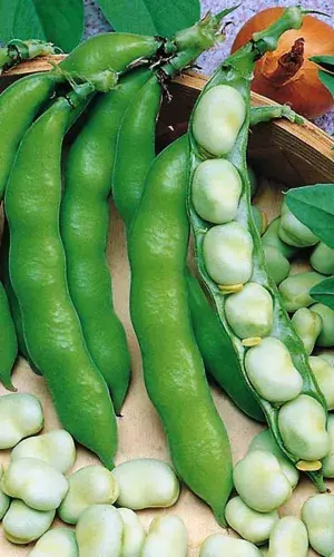 Высокоурожайный, раннеспелый сорт. Бобы мясистые, слегка изогнутые, длиной 8-13 см. Семена крупные, плоские, зеленовато-белые, при хранении буреют.