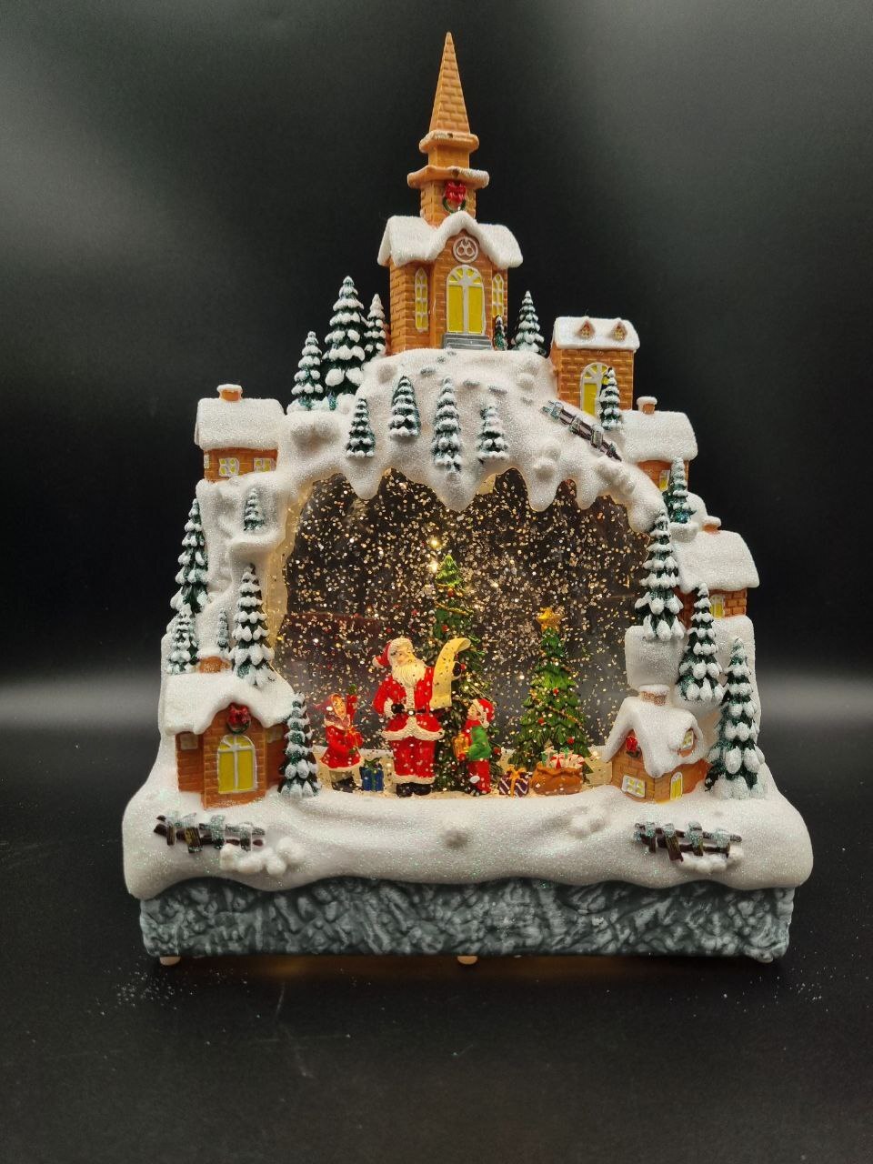 Фонарь Домик новогодний светящийся музыкальный сеть/батарейки QW19
