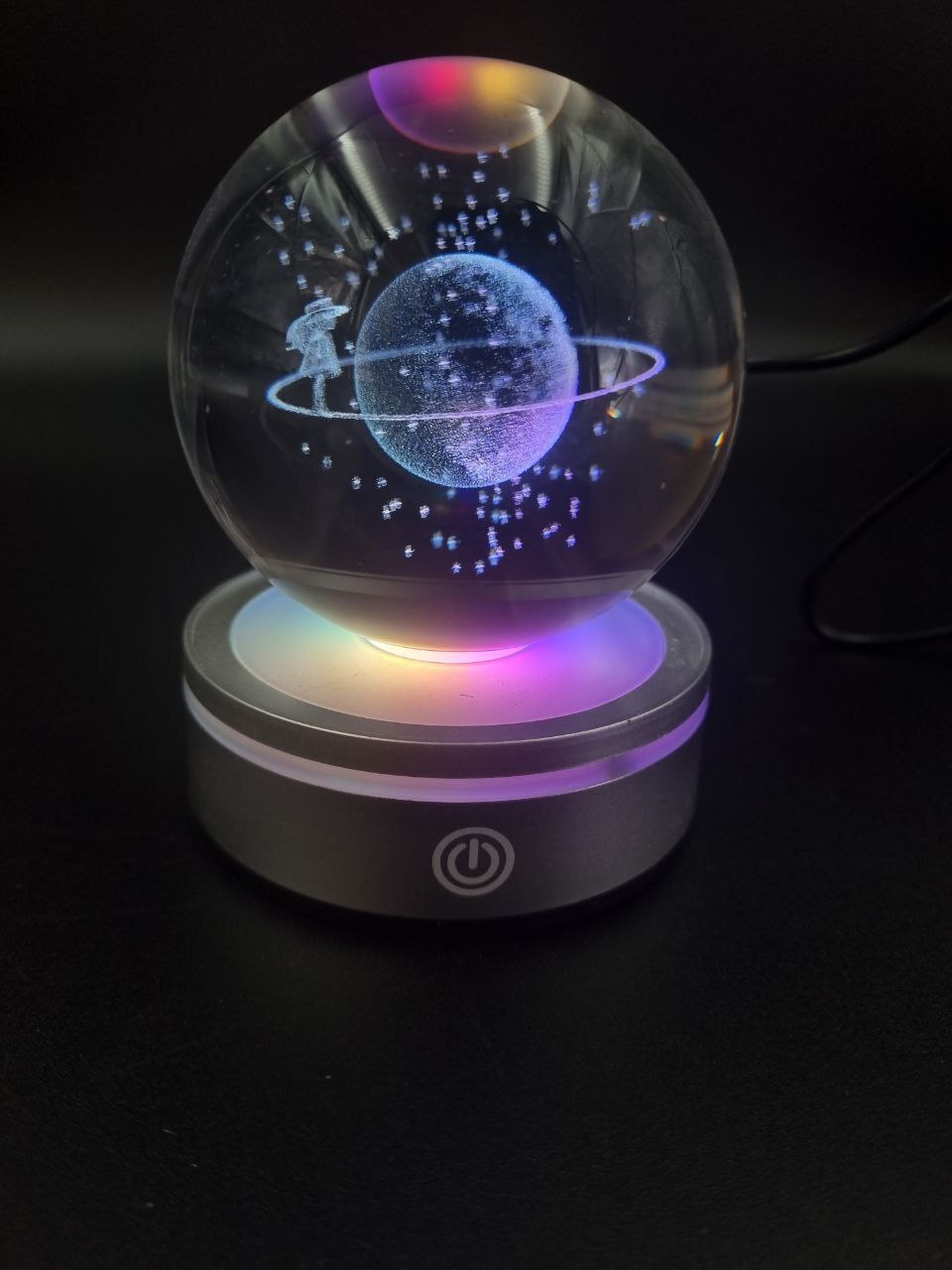 Хрустальный светодиодный вращающийся шар-ночник Микс на пластиковой подставке СЕТЬ d8см