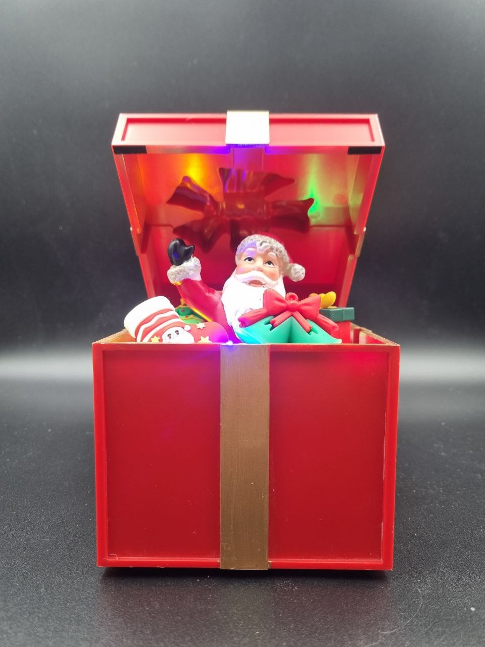 Подарок новогодний светящийся музыкальный открывающийся сеть/батарейки ZS652