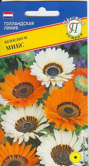 Однолетник. Обильно цветущее однолетнее растение высотой 60 см. с яркими цветками. Образует широкие разветвленные кустики. На длинных цветоносах возвышаются крупные соцветия до 10 см в диаметре. Необычные цветки поворачивают свои головки вслед за солнцем. В дождливую и пасмурную погоду цветки закрываются. Используют для украшения цветников, каменистых горок и на срезку. Посев семенами в ящики для получения рассады в марте-апреле в теплицах и парниках. В открытый грунт высаживают, когда минует угроза заморозков. Венидиум - теплолюбивое растение, не переносит переувлажнения, предпочитает дренированные, удобренные почвы. При несложном уходе этот эффектный цветок будет радовать Вас все лето до глубокой осени.